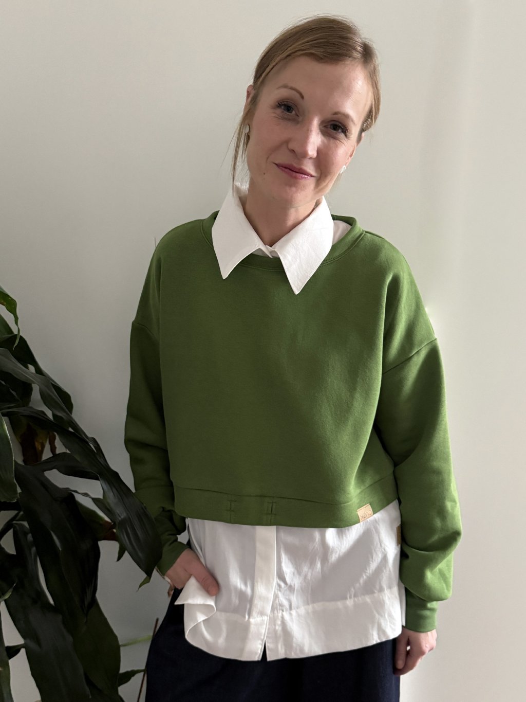 Na fotce velikost 36. Klidně volte menší, než jste zvyklá, protože mikina je volná.